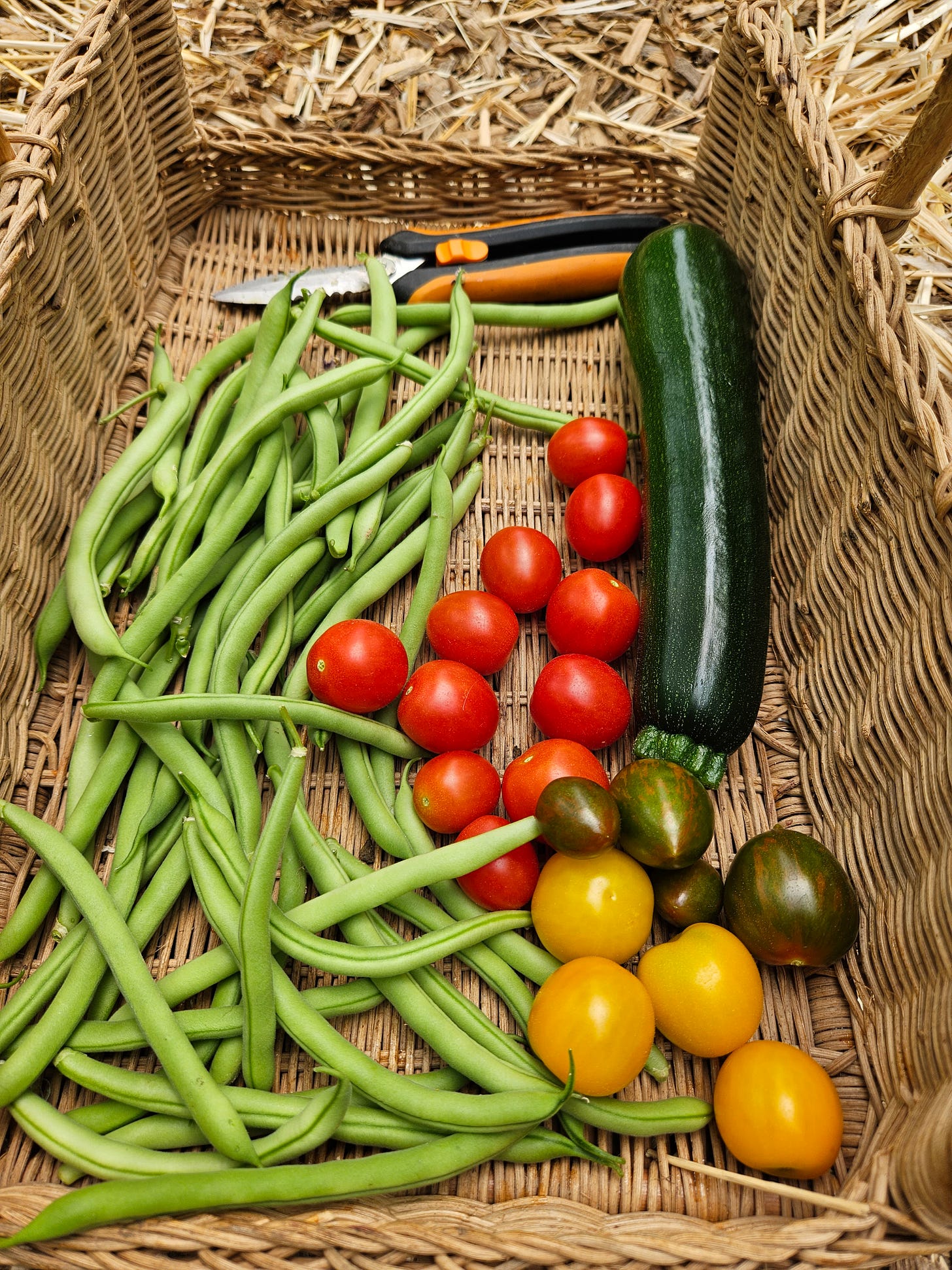 The beans themselves are plump, juicy, around five inches long, and suitable for all purposes in the kitchen. We ate them fresh during the summer in soups and mixed vegetable roasts.
