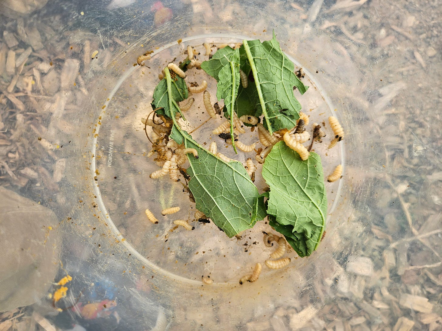I was worried that, if I just composted the plants, that the SVB larvae would continue eating and eventually pupate. I didn’t want them to have any chance of surviving so I went through the painful process of hunting them down, one-by-one. I used a sharp knife to cut open the squash stems and a pair of tweezers to pull the larvae out. To guarantee their downfall, I fed them to the chickens.