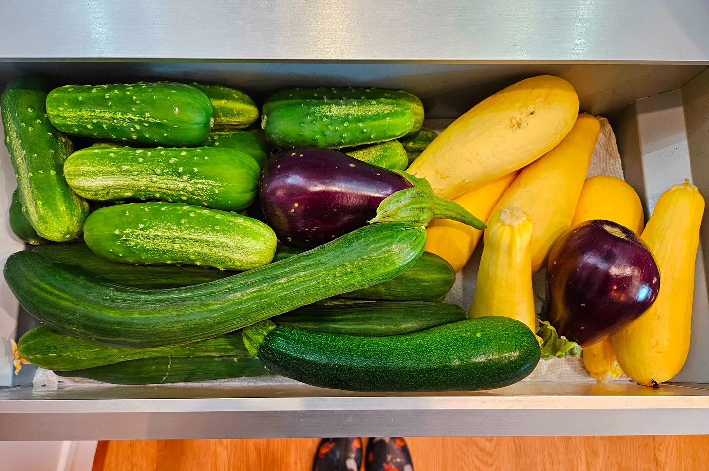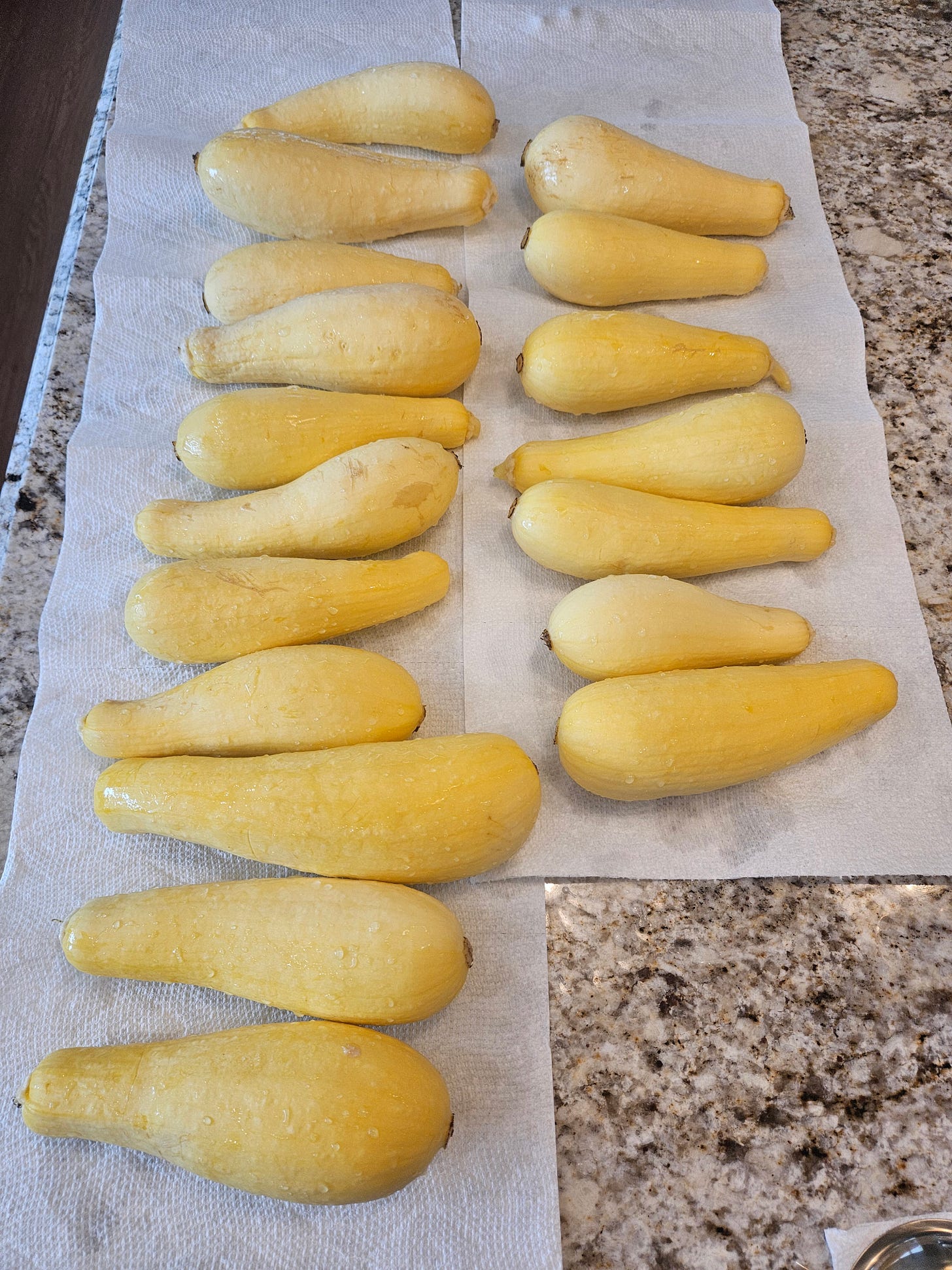 They are particularly delicious when picked early because they will rapidly develop a hard and unappetizing skin if left on the vine for even a day or two too long. So, I made it a practice to go out to check for new squash every day and erred on the side of picking them too early.