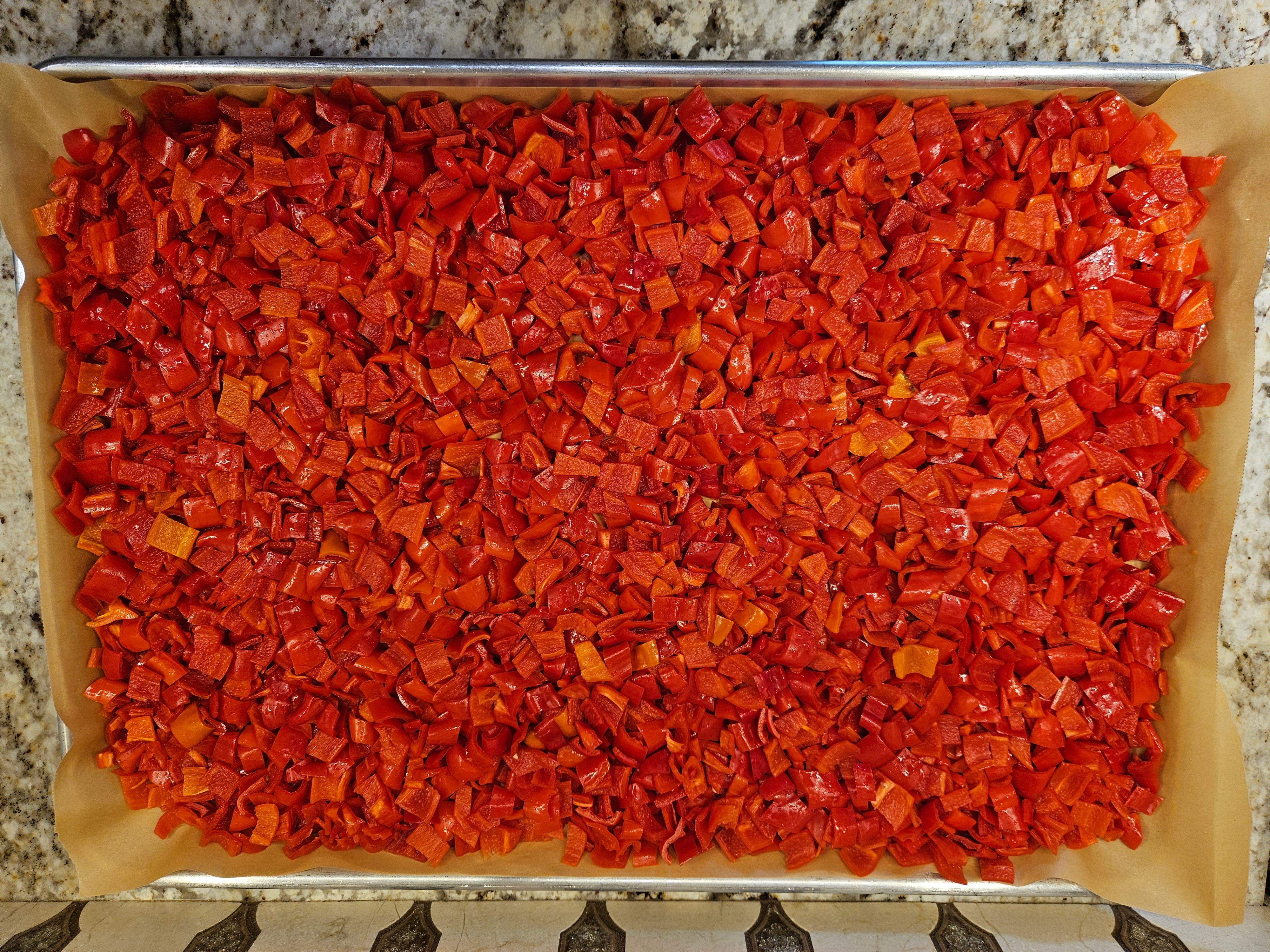 I have some whole, dried Aji Ricos strung up in the basement with which I intend to make red chili flakes and/or pulverize into a paprika-like powder. The rest of the harvest, which was a lot, was seeded, cubed, and frozen in bags. We’re intending on throwing some into chili soon.