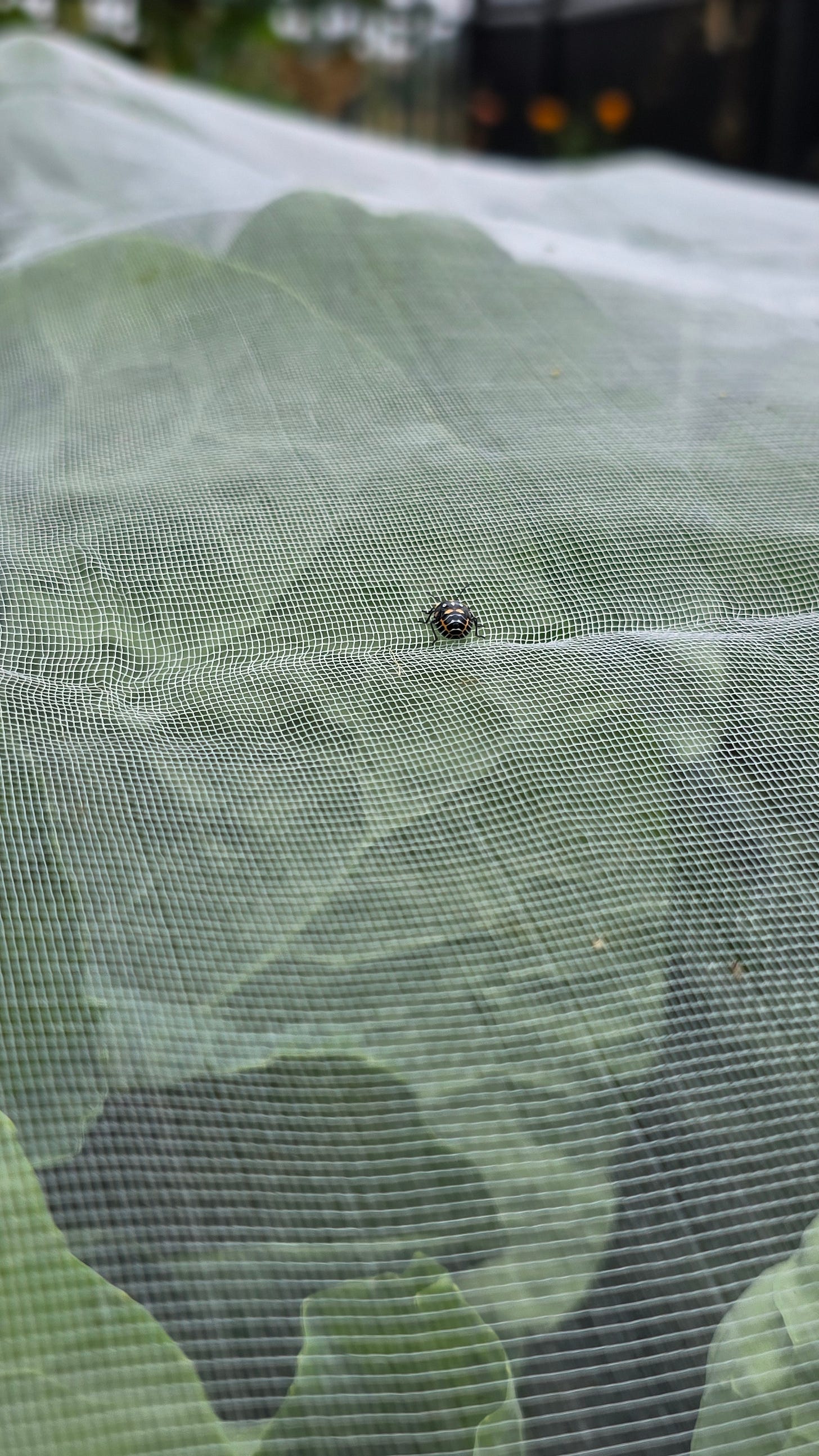 The downside is that insects like harlequin bugs can feed on the leaves through the netting. At least they can’t lay their eggs on the leaves, though!