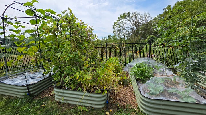 As I mentioned at the start, my attention is being paid to removing plants from the garden and flipping the beds for fall and winter. So far, I’ve removed the tomatoes and dry beans, but the cucumbers and eggplants will soon follow.