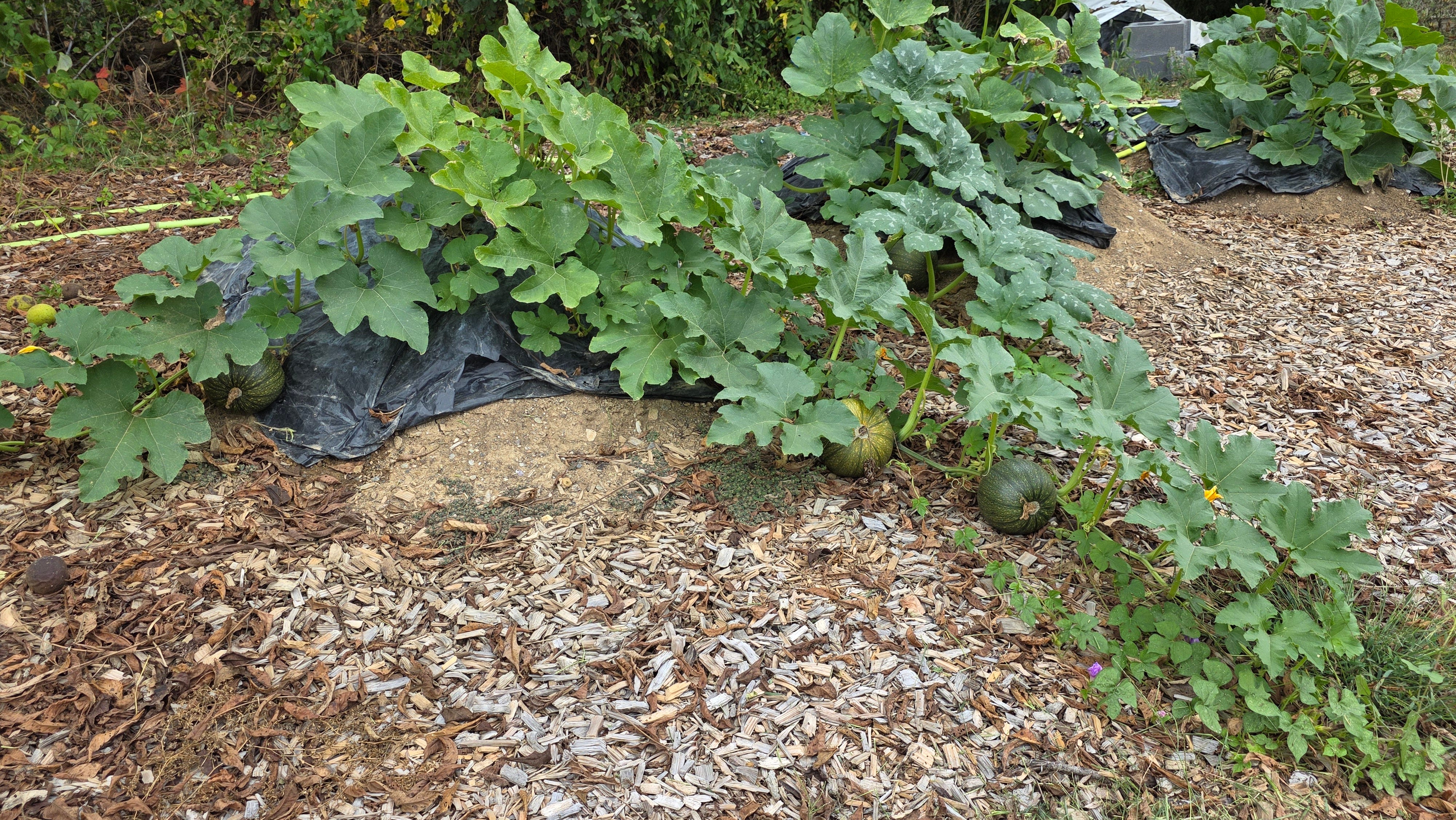 On the squash mounds and under the eggplants, my winter squashes are doing perfectly! Again, another gamble. I really wasn’t sure if my timeline would work out and if I’d get ripe winter squashes. I planted them out much later than I ever have, but it seems I still gave them enough time.