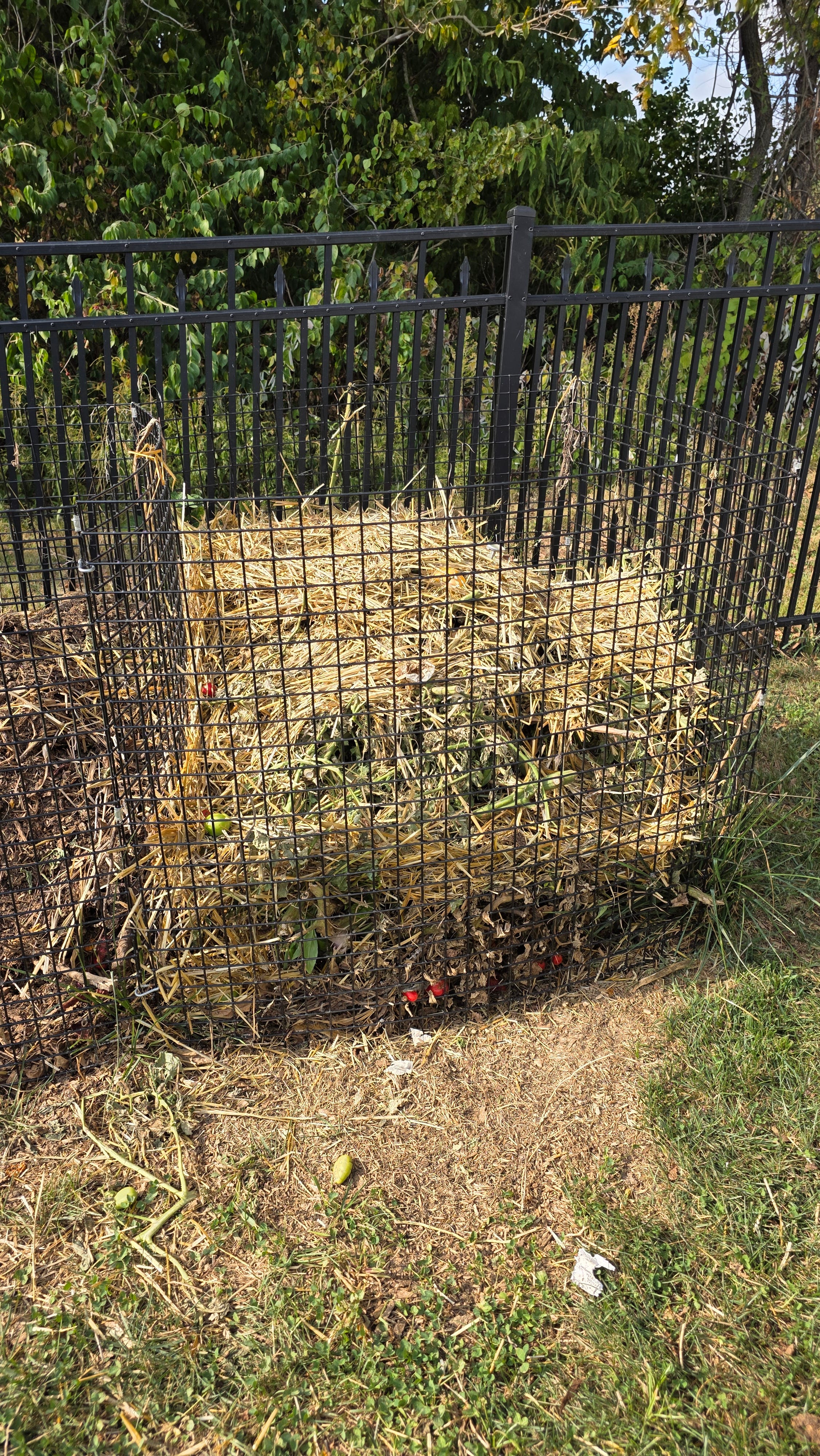Once I get most of the plants that are coming out of the garden into the compost bin, I’ll heap chicken manure and hemp bedding into it as well which will really help to heat things up!