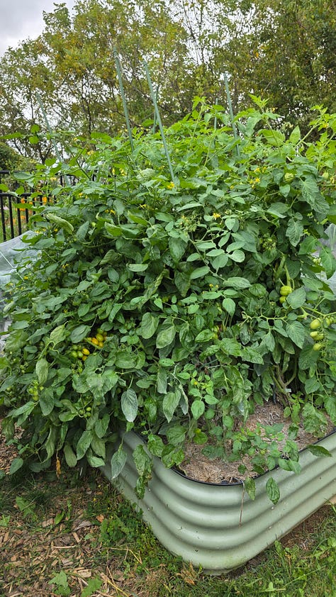 Despite growing entirely out of my control, the determinate tomatoes look very good. There are so many green tomatoes on the plants and I’m excited for them to ripen!