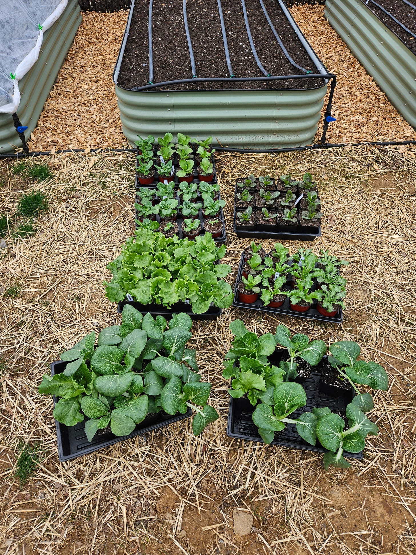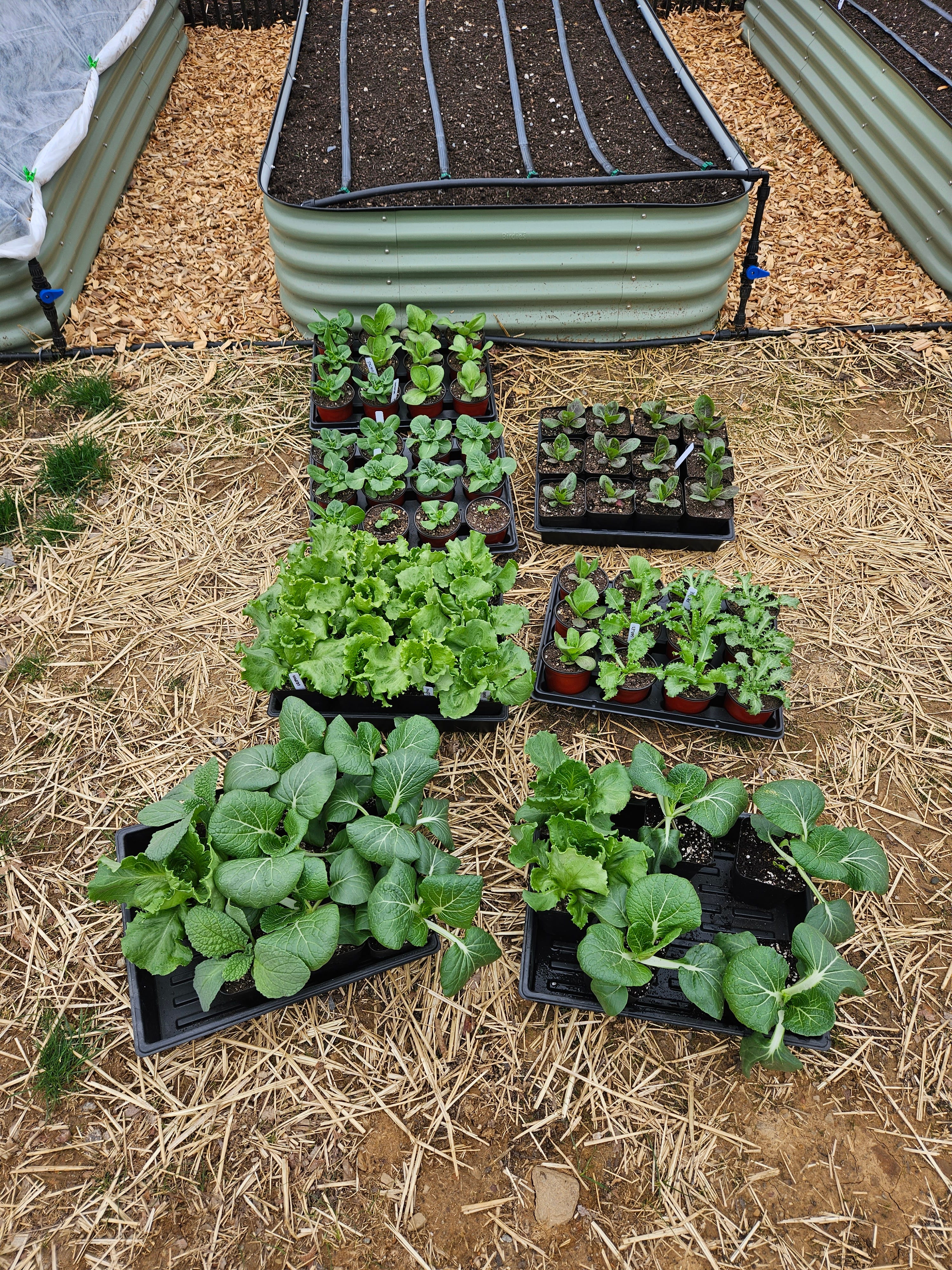 I waited until a hard freeze passed and then transplanted them the next day. It was a misty and wet day, so I got really muddy, but the soft rain helped the starts adjust easily.