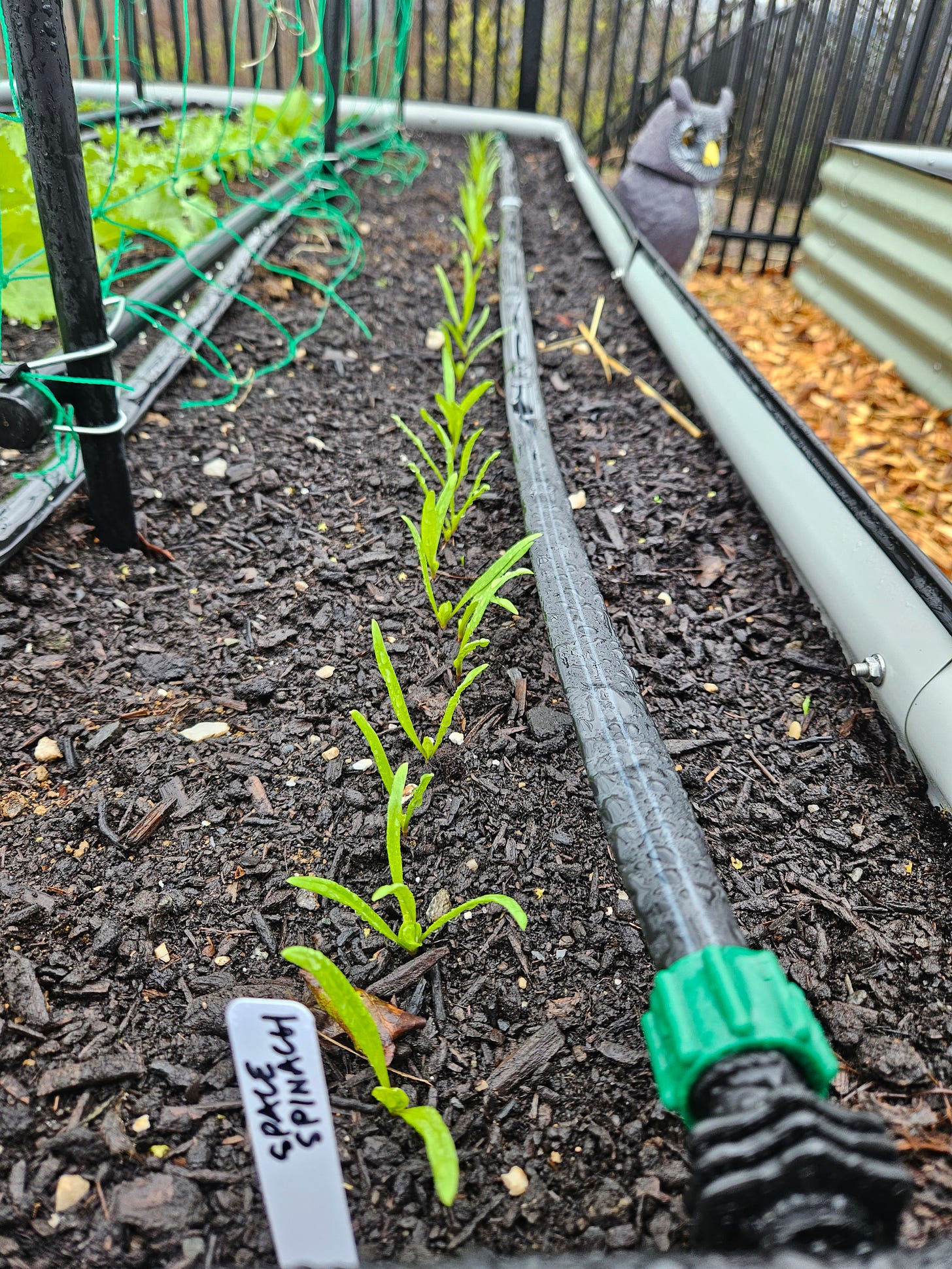 I had great germination from my spinach seeds, and I’ll be succession sowing every 10 to 14 days to keep the harvests going through spring. The arugula is in dire need of thinning. And then, of course, there’s the weeding…