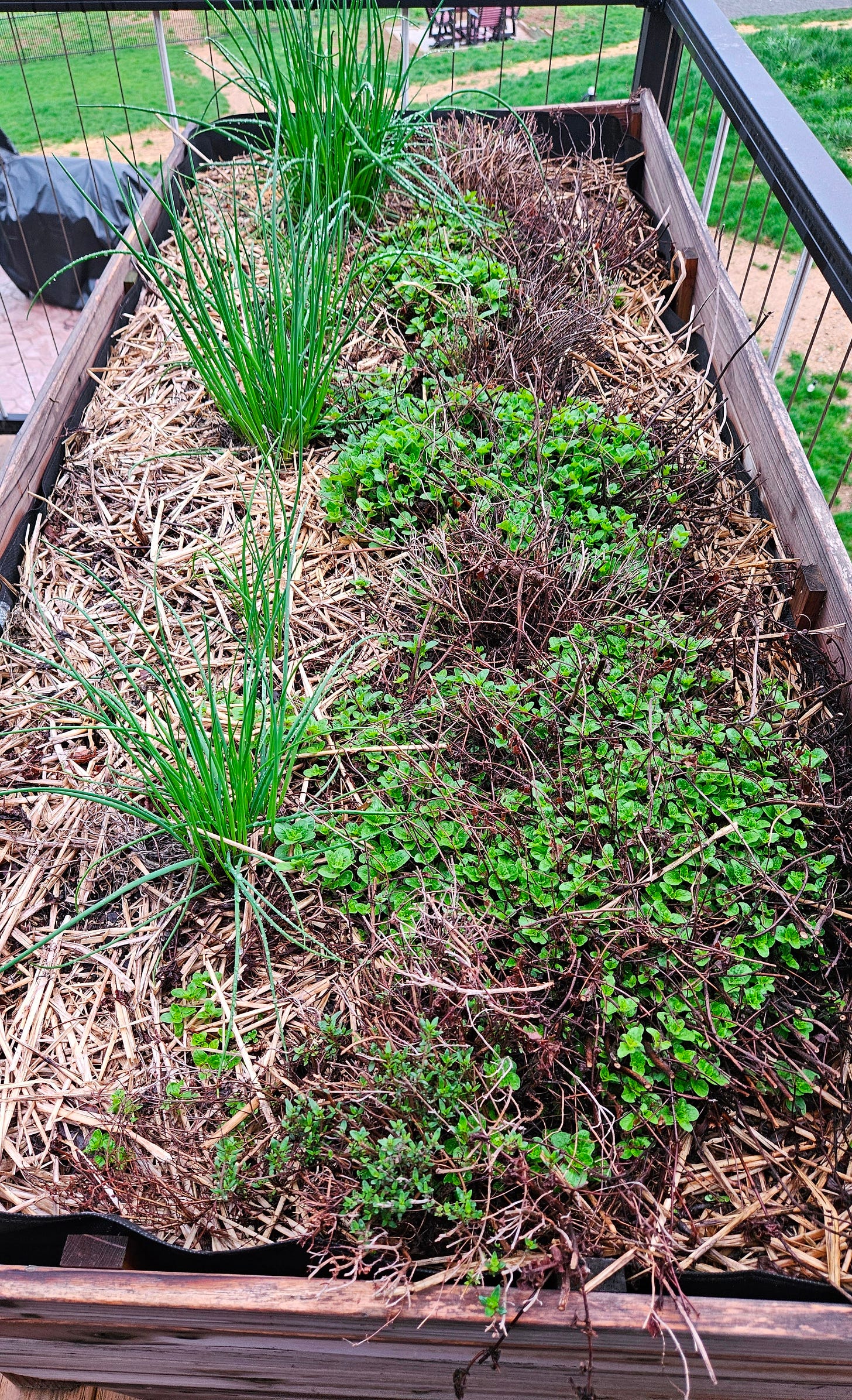 A couple of days ago, we were able to enjoy fresh chives from the herb garden for the first time since November. I also noticed my lavender, thyme, oregano, and sage plants beginning to leaf.