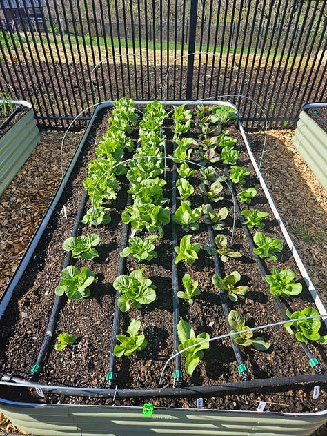 One week ago, I celebrated my birthday—but I also celebrated another big transplanting day. All the leafy greens I started back in the first week of March had already outgrown the containers I potted them up into. They needed to get outside. And, honestly, I needed them to get outside, too. Watering them every other day was getting a little old.
