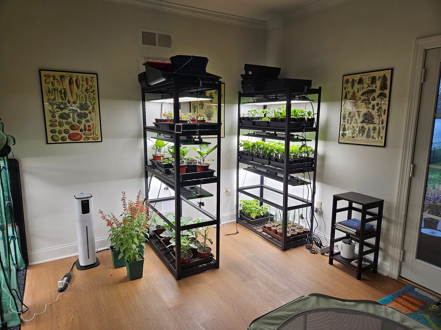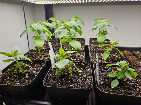 Since my last post, I’ve potted up my scarlet sage, eggplants, tomatillos, tomatoes, and basil. The only plants left in soil blocks are my rosemary, asters, blanket flower, and agastache and I’m planning to pot those up within the next few days.
