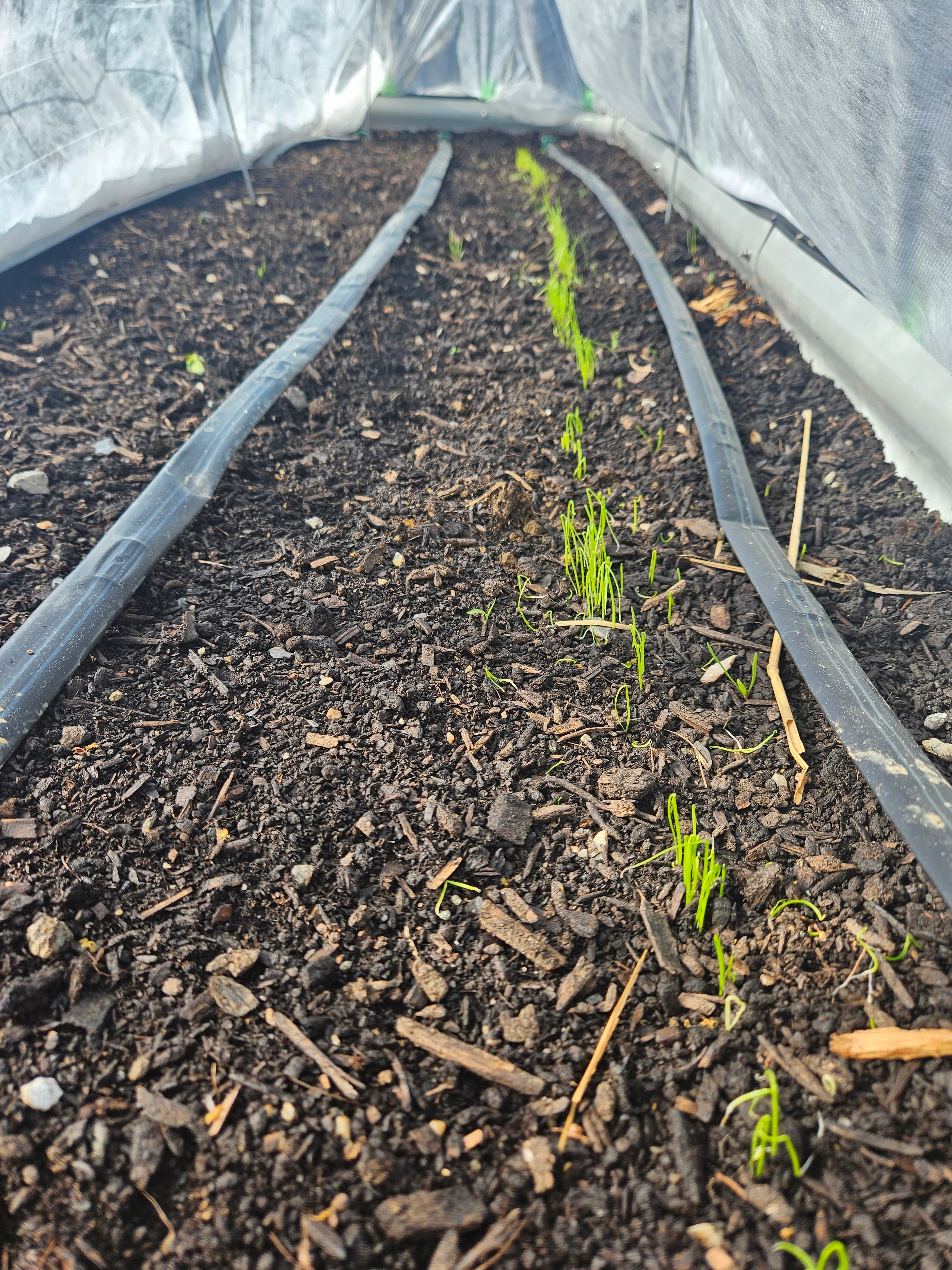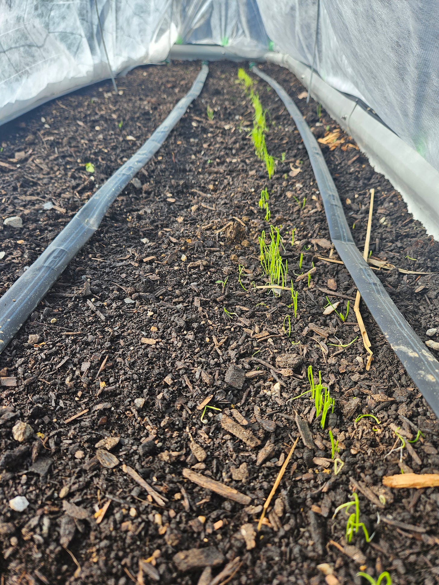 The last day of March marked the first seeds sown inside the polytunnel. While the bee balm, nigella, catnip, chamomile, and a patch of self-sown cilantro were already getting cozy in there, it felt good to finally plant a big utility crop like carrots.